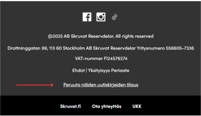 Jos olet saanut uutiskirjeen ja haluat lopettaa sen tilauksen, voit tehdä niin jokaisen uutiskirjeen alareunasta löytyvän linkin kautta. Avaa viimeisin meiltä saamasi sähköpostiviesti. Klikkaa "Jos et enää halua vastaanottaa uutiskirjettä, klikkaa tästä". Silloin tilaus päättyy automaattisesti.
